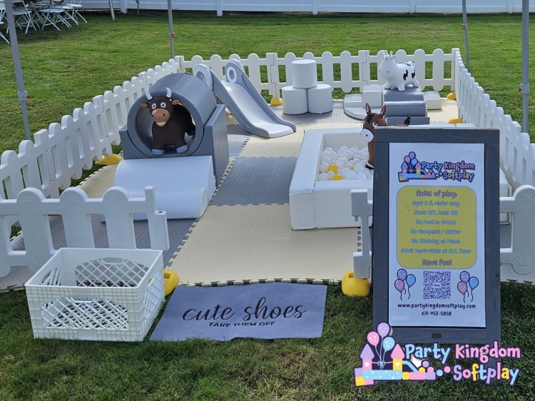 - 4ft by 4ft Ball Pit – Filled with white, orange & yellow balls.