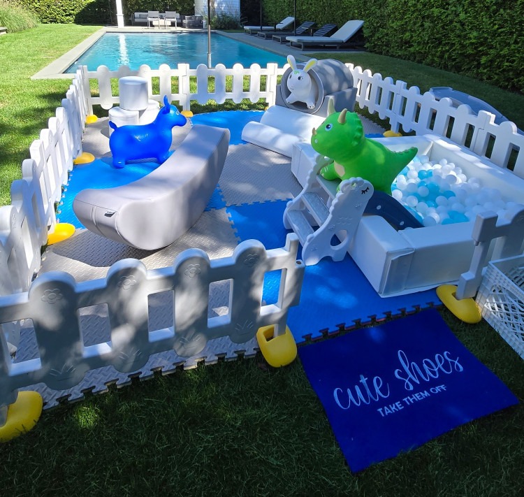- 4ft by 4ft Ball Pit – Filled with white and blue balls.