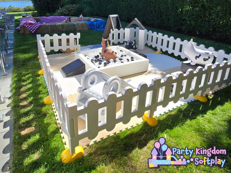 - 4ft by 4ft Ball Pit – Filled with white and red balls.
