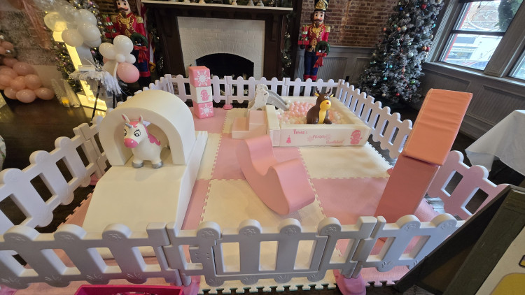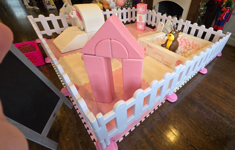 - 4ft by 4ft Ball Pit – Filled with white and blue balls.